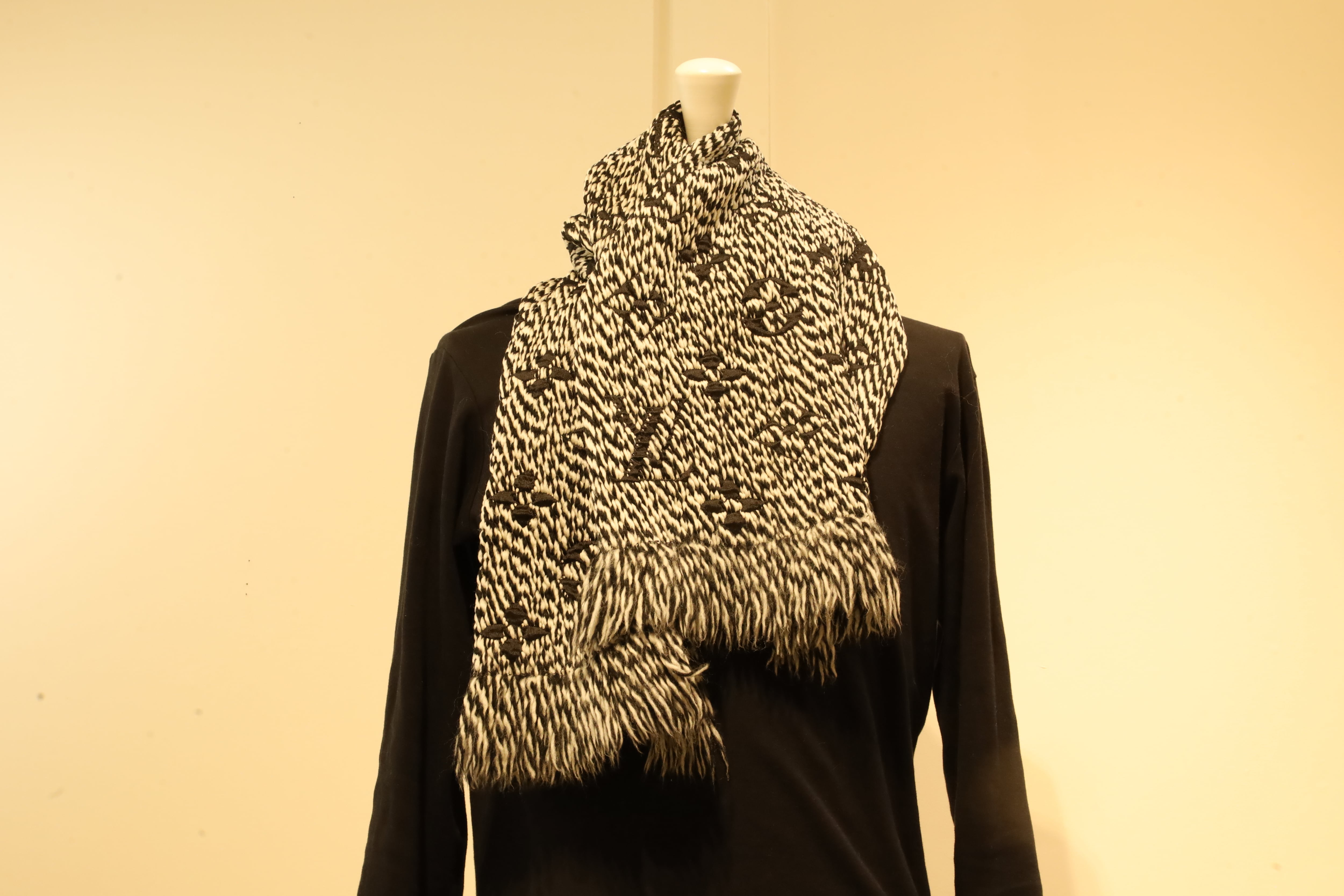 ・ブランド:Louis Vuitton ・名称:エシャルプ・ロゴマニア ミックス ・素材:ウール ・カラー:ブラック x ホワイト ・タイプ:マフラー ・サイズ:30x 175 (幅 x 高さ) ・コンディション:フリンジ部毛羽立ち(中)香水臭(小) ・備考:タグなし